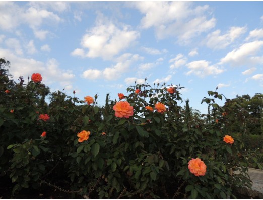 Rosa 'Souv d' Anne Frankの花壇 秋晴れの夕刻に