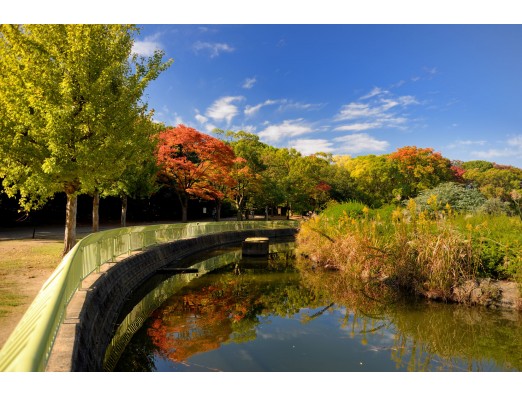 曙光を浴びて、紅く・黄色く輝いています。 切り取ると、すっかり秋です