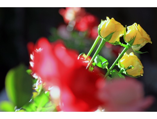 情報センター2階の薔薇展で撮りました 華やいだ薔薇たちが輝いていました