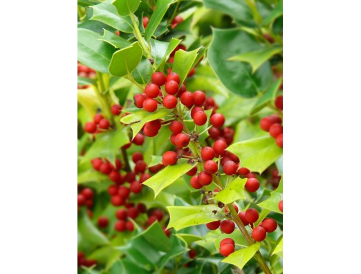 ヒイラギは一年中緑のままで、生命力の象徴であり、自らを元気付けるという意味があります。クリスマスの時期よく見られます。