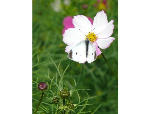 白い蝶々と白い花、見分けがつきにくいでしょう。