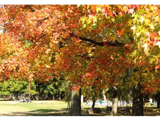 お昼頃です。 向こうの芝生では子供たちがお弁当を食べています。風もなくとてものどかなひと時でした。
