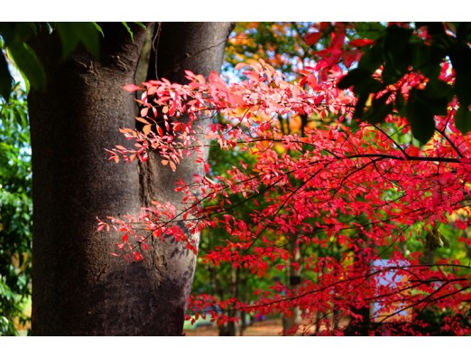 長居植物園大池の側で、小さい小真弓の葉が真っ赤に色づき、一段とその可愛さが増して輝いて見えました。
