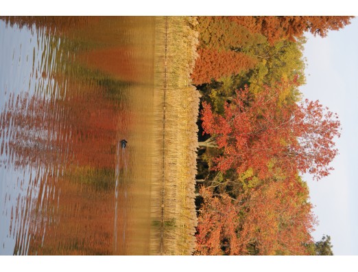 湖面に紅葉が映って美しい 長居の秋満喫できました。