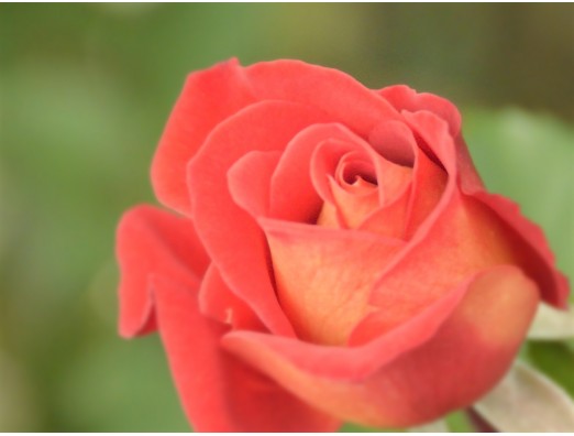 あやおり、緋紅色の地に黄色のポイントが入る裏弁黄色の複色。花弁数24枚、花径7cm程で花付きが特に良いバラです。