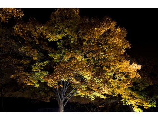 ケヤキのライトアップです。 夜の紅葉もきれいです。
